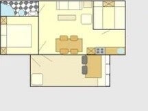 Keuken: Het mobile home is voorzien van een complete keukeninventaris waaronder magnetron, koelkast met vriesvak, 4 pits gastoestel, afzuigkap, oventje, Senseo koffiezetapparaat, Dolce Gusto, waterkoker en kinderstoel. Grillplaat/elektrische barbecue (ook voor op de veranda te gebruiken).